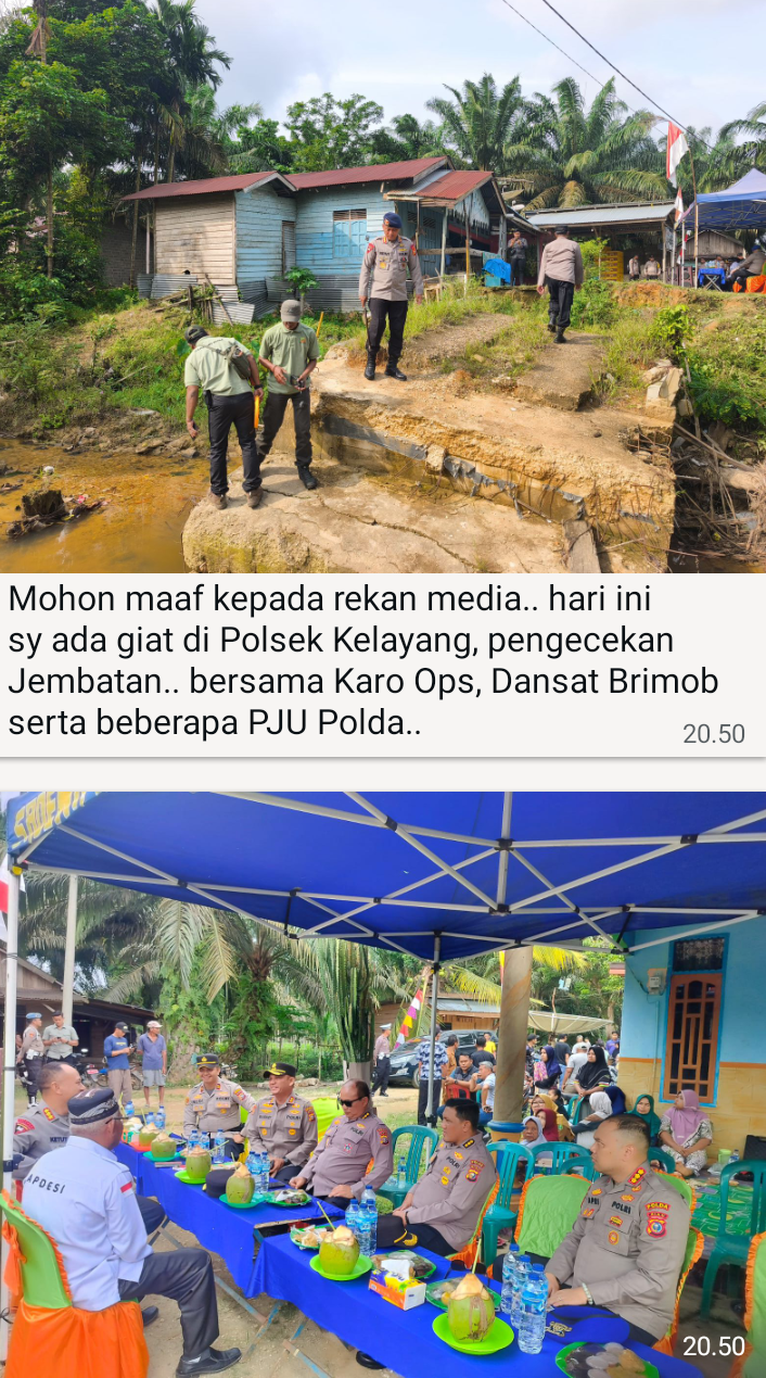 “Mohon maaf kepada rekan media.. hari ini sy ada giat di Polsek Kelayang, pengecekan Jembatan.. bersama Karo Ops, Dansat Brimob serta beberapa PJU Polda..” lanjutnya via pesan di media WhatsApp 20.50 wib (20/1/26) kepada redaksi BanuaMinang.co.id dan mengirimkan dua foto yang diduga giatnya dihari ini.