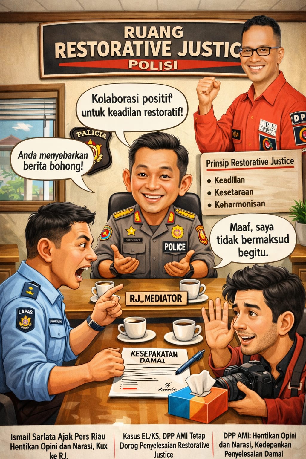 Pekanbaru, BanuaMinang.co.id Ketua Umum Dewan Pimpinan Pusat Aliansi Media Indonesia (DPP AMI), Ismail Sarlata, mengajak seluruh insan pers di Riau untuk menahan diri dan menghentikan penyebaran opini maupun narasi yang berpotensi memperkeruh situasi terkait perkara yang melibatkan pihak Lembaga Pemasyarakatan (Lapas) Kelas IIA Pekanbaru dan rekan pers berinisial EL/KS.