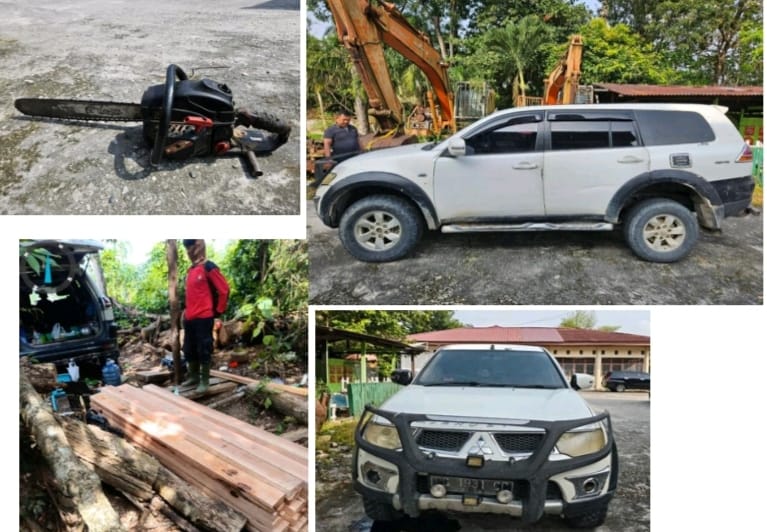 “Saat itu Tim Polhut Balai TNTN bersama Satgas PKH menemukan jejak kendaraan roda 4 (mobil) di dalam Kawasan TNTN, Tim menelusuri jejak mobil tersebut dan mendengar suara chainsaw.