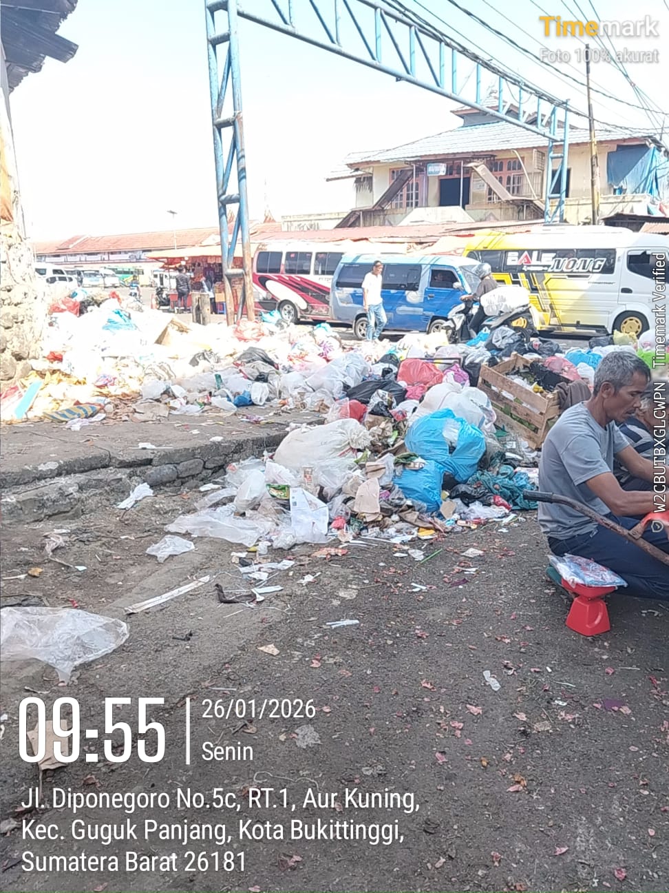 Bukittinggi, BanuaMinang.co.id Kondisi kebersihan di kawasan Pasar Aur Kuning, tepatnya di Jl. Diponegoro, Kecamatan Guguk Panjang, Kota Bukittinggi, disorot warga setelah tumpukan sampah terlihat mengganggu aktivitas publik pada Senin (26/1/2026) pagi. Sampah campuran yang menumpuk di badan jalan dinilai menurunkan kenyamanan serta berpotensi menimbulkan masalah kesehatan, sementara aktivitas pasar tetap berlangsung seperti biasa.