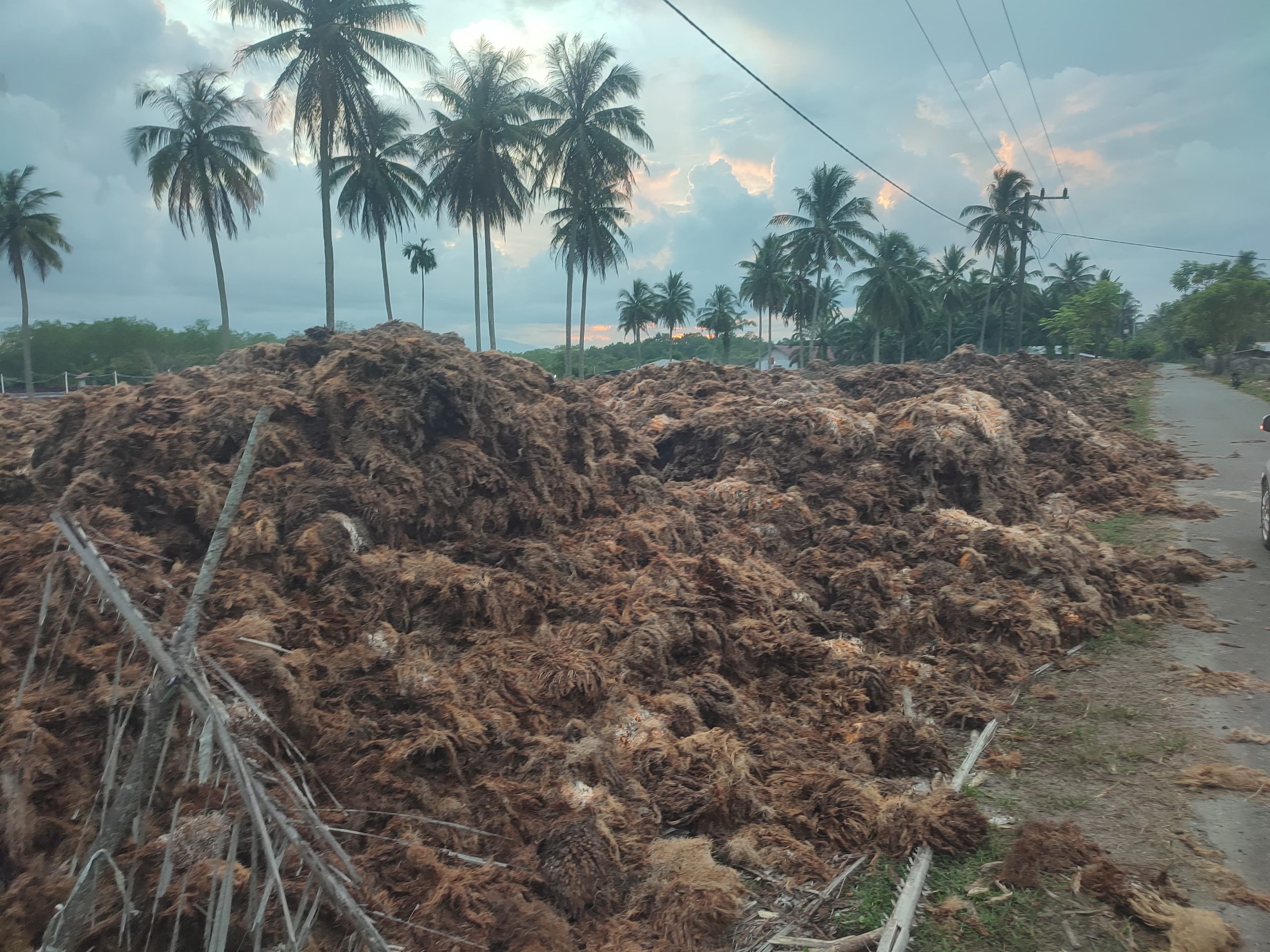 Tanjung Mutiara, BanuaMinang.co.id Tumpukan limbah tandan kosong kelapa sawit (TKKS) yang membubung tinggi dekat tempat tinggal pemukiman masyarakat, Jorong Pasia Paneh, Nagari Tiku Selatan, membuat masyarakat sekitar resah oleh bau busuk dan juga berserakan ditepi jalan.