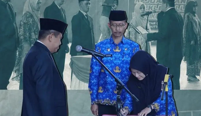 Pengangkatan melalui perpindahan jabatan, Zulferi sebagai Pembimbing Kesehatan Kerja Ahli Muda serta Erick Seftian Arli sebagai Pranata Sumber Daya Manusia Aparatur pada bidang pengadaan, mutasi, pemberhentian dan informasi BKPSDM.