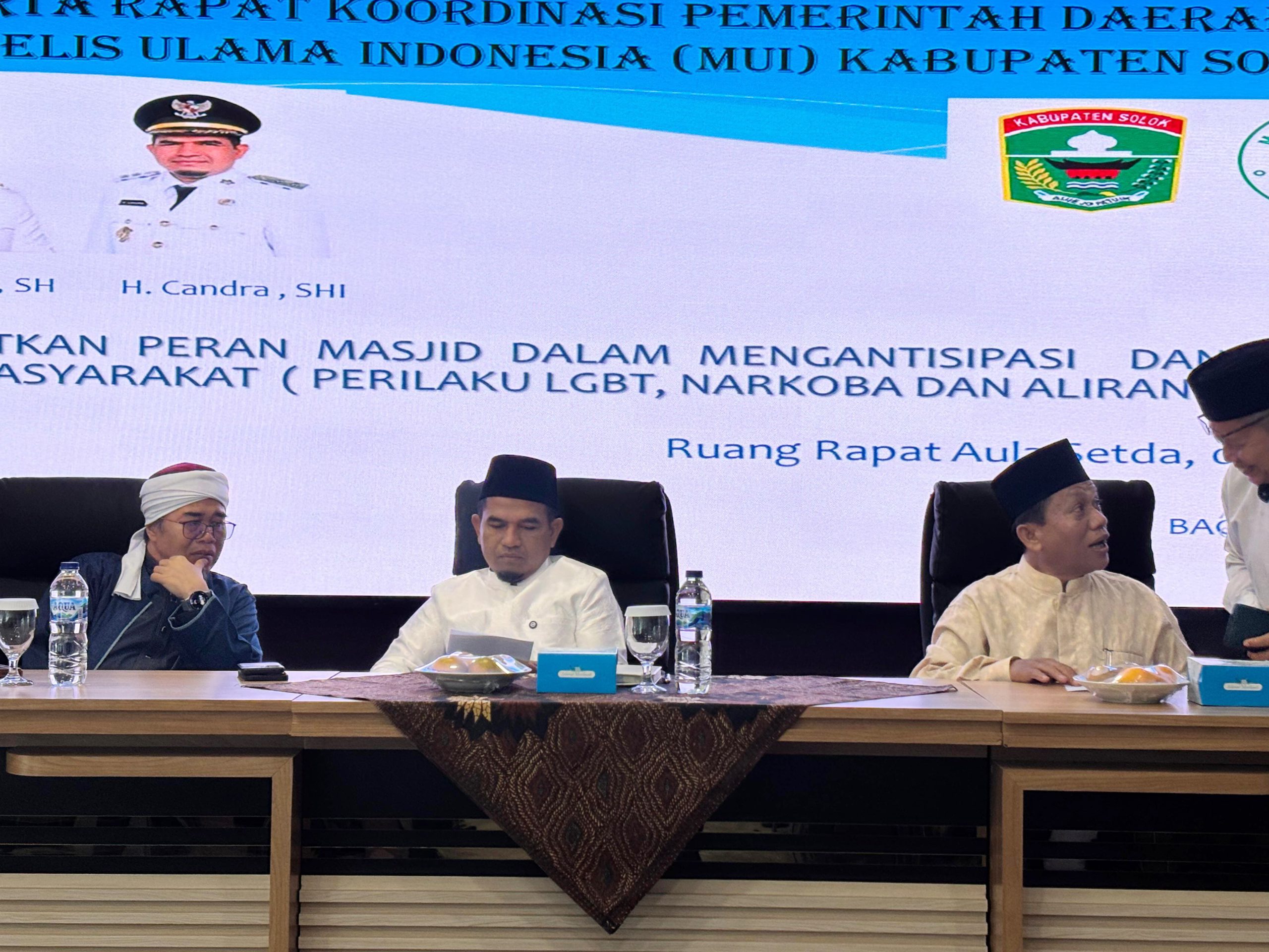 Arosuka, BanuaMinang.co.id Pemerintah Kabupaten Solok bersama Majelis Ulama Indonesia (MUI) Kabupaten Solok menggelar rapat koordinasi di Ruang Rapat Setda, Gedung C, Rabu (01/10/2025). Kegiatan ini membahas penguatan peran masjid dalam menangani berbagai penyakit masyarakat, seperti narkoba, perilaku LGBT, dan aliran menyimpang.