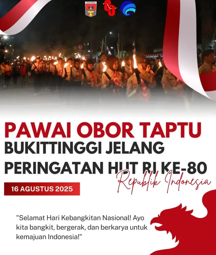 Wali Kota Bukittinggi, Ramlan Nurmatias, menyampaikan apresiasi kepada seluruh pihak yang telah berpartisipasi dalam kegiatan ini. Menurutnya, pawai obor merupakan momentum penting untuk menanamkan nilai nasionalisme, memperkokoh persatuan, serta mengingatkan kembali masyarakat akan pentingnya menjaga semangat kemerdekaan dalam kehidupan sehari-hari.