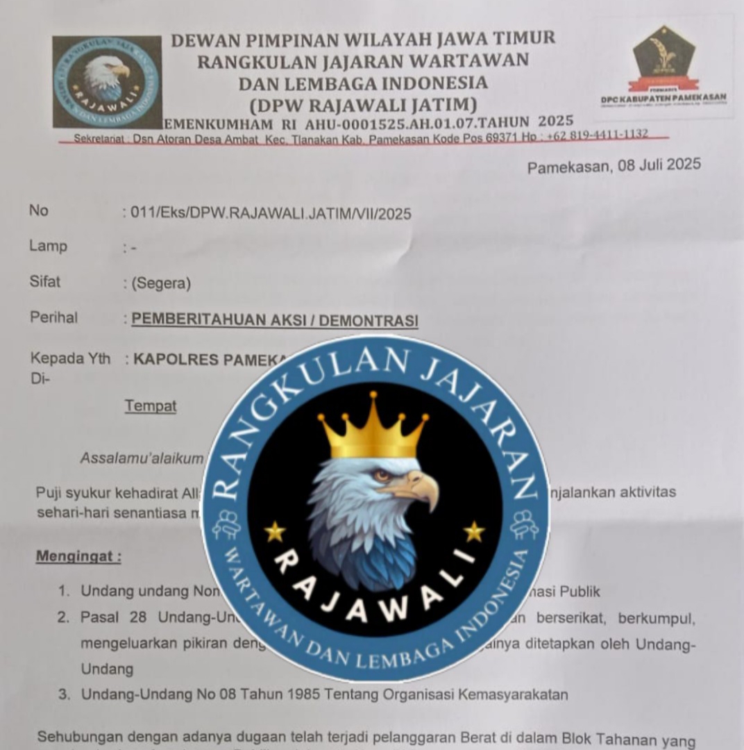 Pamekasan, BanuaMinang.co.id Dewan Pimpinan Wilayah (DPW) Rangkulan Jajaran Wartawan dan Lembaga Indonesia (RAJAWALI) Provinsi Jawa Timur bersama Dewan Pimpinan Cabang (DPC) Forum Masyarakat Peduli Keadilan (Formades) Pamekasan menyatakan keprihatinan mendalam terhadap maraknya dugaan penggunaan alat komunikasi (telepon genggam) oleh warga binaan serta peredaran narkoba di dalam Lembaga Pemasyarakatan (Lapas) di kelas IIA Pamekasan. (10/7/25).
