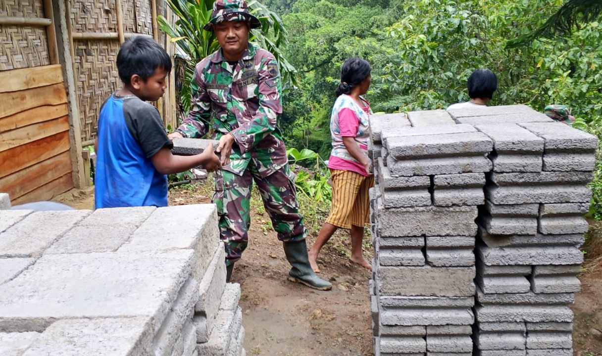 Kehadirannya pun menjadi penyemangat tersendiri bagi anggota satgas yang tengah melaksanakan pembangunan rumah tidak layak huni (RTLH) milik orang tuanya. Sabtu (28/2/2026).