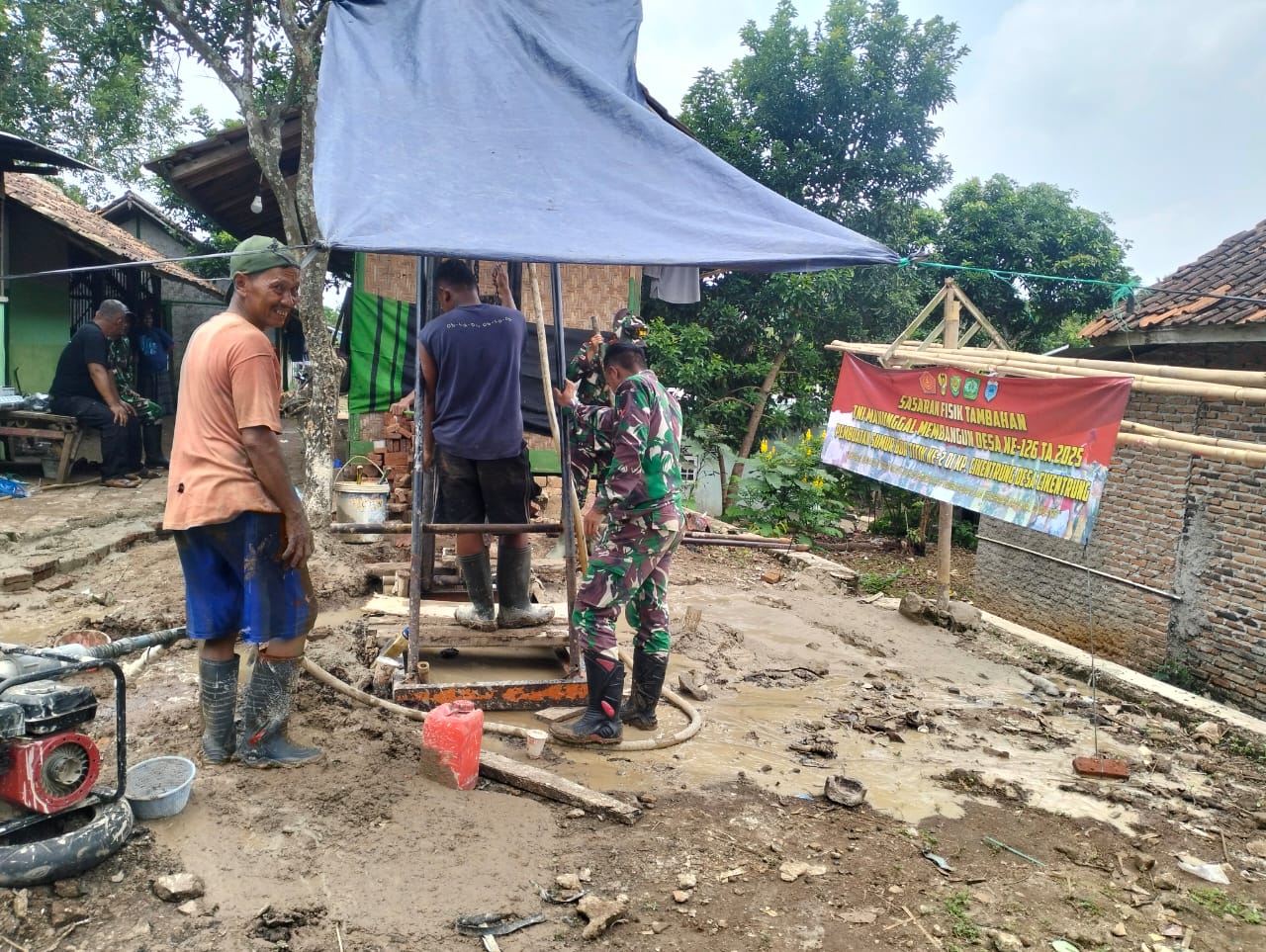 Satgas TMMD ke-126 Kodim 0601/Pandeglang Bangun Sumur Bor untuk Warga Kampung Cikentrung, Desa Cikentrung Kecamatan Cadasari