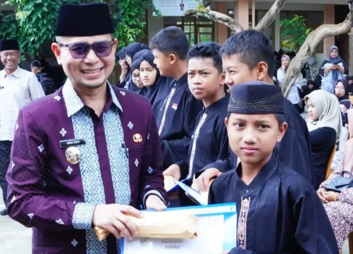 Bukittinggi, BanuaMinang.co.id SMPN 3 Bukittinggi, gelar kegiatan amal untuk para pelajar. Reward untuk 10 pelajar dengan saldo tabungan haji terbanyak dan Ramadhan berbagi, diserahkan di halaman SMPN 3, Jumat 13 Maret 2026.