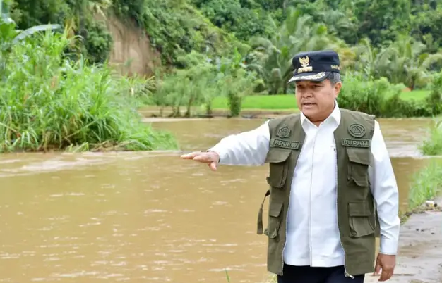 Palupuh, Banuaminang.co.id Bupati Agam, Ir H Benni Warlis MM, Dt Tan Batuah, meninjau langsung kondisi banjir yang melanda Jorong Lurah Dalam, Nagari Pasie Laweh, Kecamatan Palupuh, Rabu (26/11).