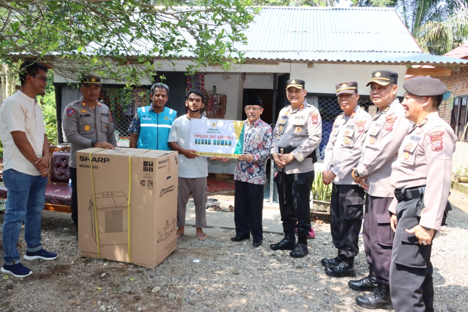 “Bantuan dalam bentuk satu unit mesin cuci, secara simbolis diserahkan oleh Kapolres Agam. Dan bantuan dalam bentuk uang tunai senilai 1 juta rupiah, secara simbolis diserahkan oleh perwakilan PLN ULP Lubuk Basung, ” kata Kasat Intelkam.